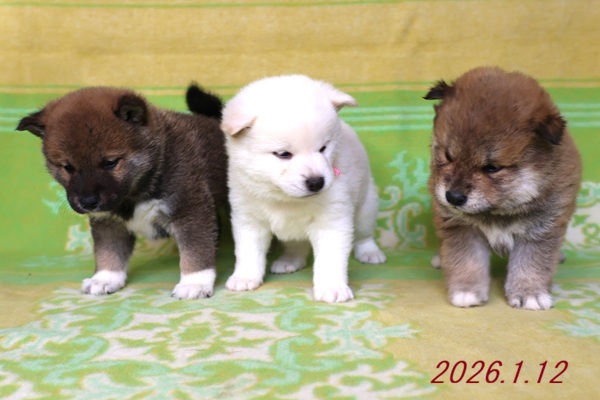赤柴2頭、白柴メス1頭